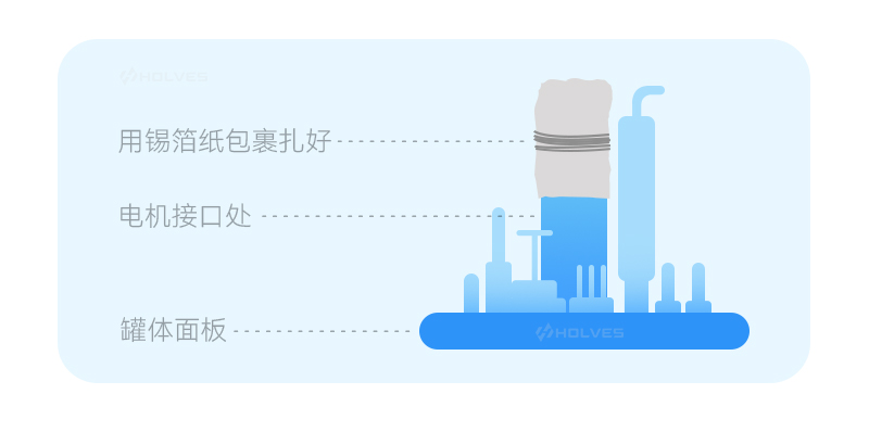取下生物反應(yīng)器的攪拌電機(jī),平放于桌上,電機(jī)接口處用錫箔紙包好并用皮筋捆扎,防止滅菌過(guò)程脫落,以消除高壓蒸汽滅菌時(shí)產(chǎn)生的高溫蒸汽對(duì)電機(jī)接口的破壞。